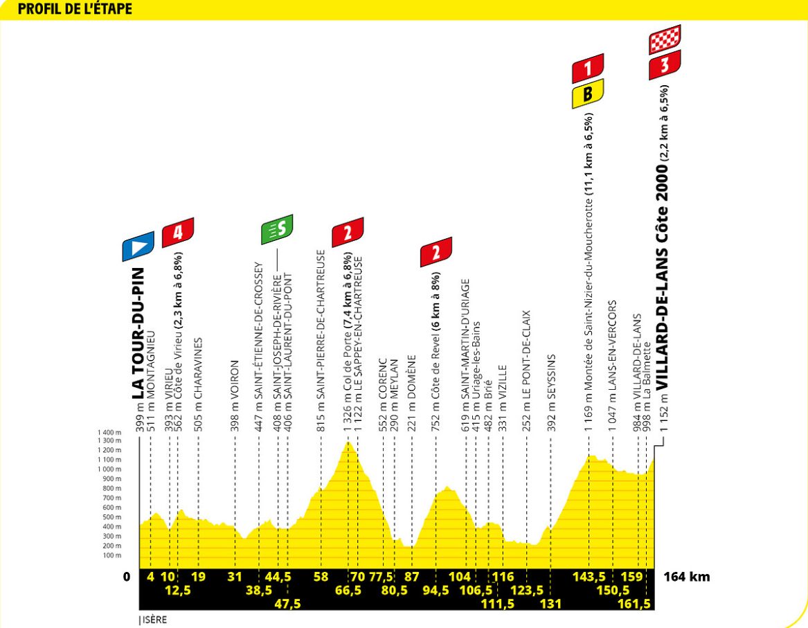 カラパスのペースアップでアラフィリップやライヒェンバッハが遅れる。さらにピーク付近でケムナがペースアップすると、これに誰も付いていくことができず、ケムナが単独でピークを通過。ケムナはその後もペースを緩めることなく164km地点の3級山岳ヴィラール=ド=ラン(距離2.2km、平均勾配6.5%)もクリアした。結局ケムナはフィニッシュ地点まで20kmほど独走で逃げ切り、ツール・ド・フランス初勝利を果たした。ケムナは今年のクリテリウム・デュ・ドーフィネの第4ステージで逃げ切ってプロ初勝利を挙げたばかりで、これがプロ通算2勝目となる。