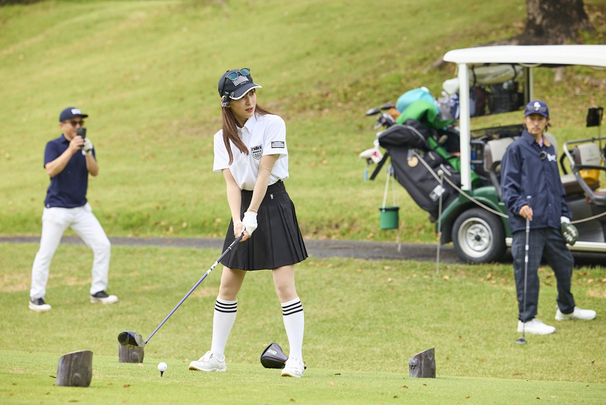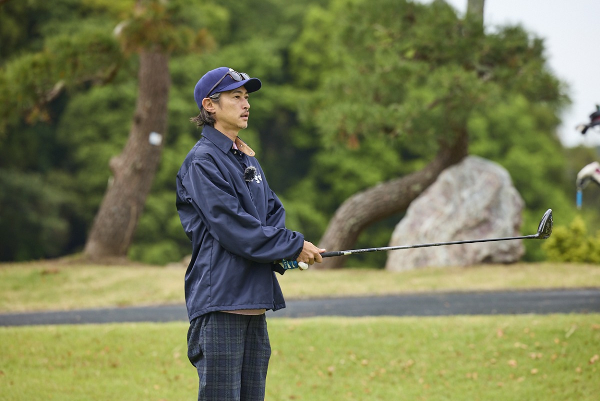女性ゴルファーへ紳士的なサポート姿が素敵な藤森慎吾さん。自身がプロデュースの『IRISHMAN(アイリッシュマン)』のゴルフウェアもお洒落に着こなしつつ、スマートなプレーで楽しまれている様子。