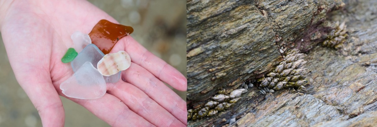 無人島に上陸し、キレイなシーグラスを見つけたり、岩に付着している貝などを観察して、再出発。