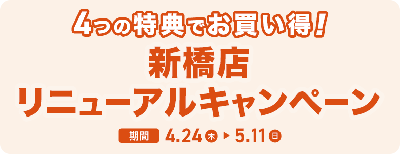 - 完成車の購入により、新橋店限定で使えるクーポン進呈 ※特価品除く