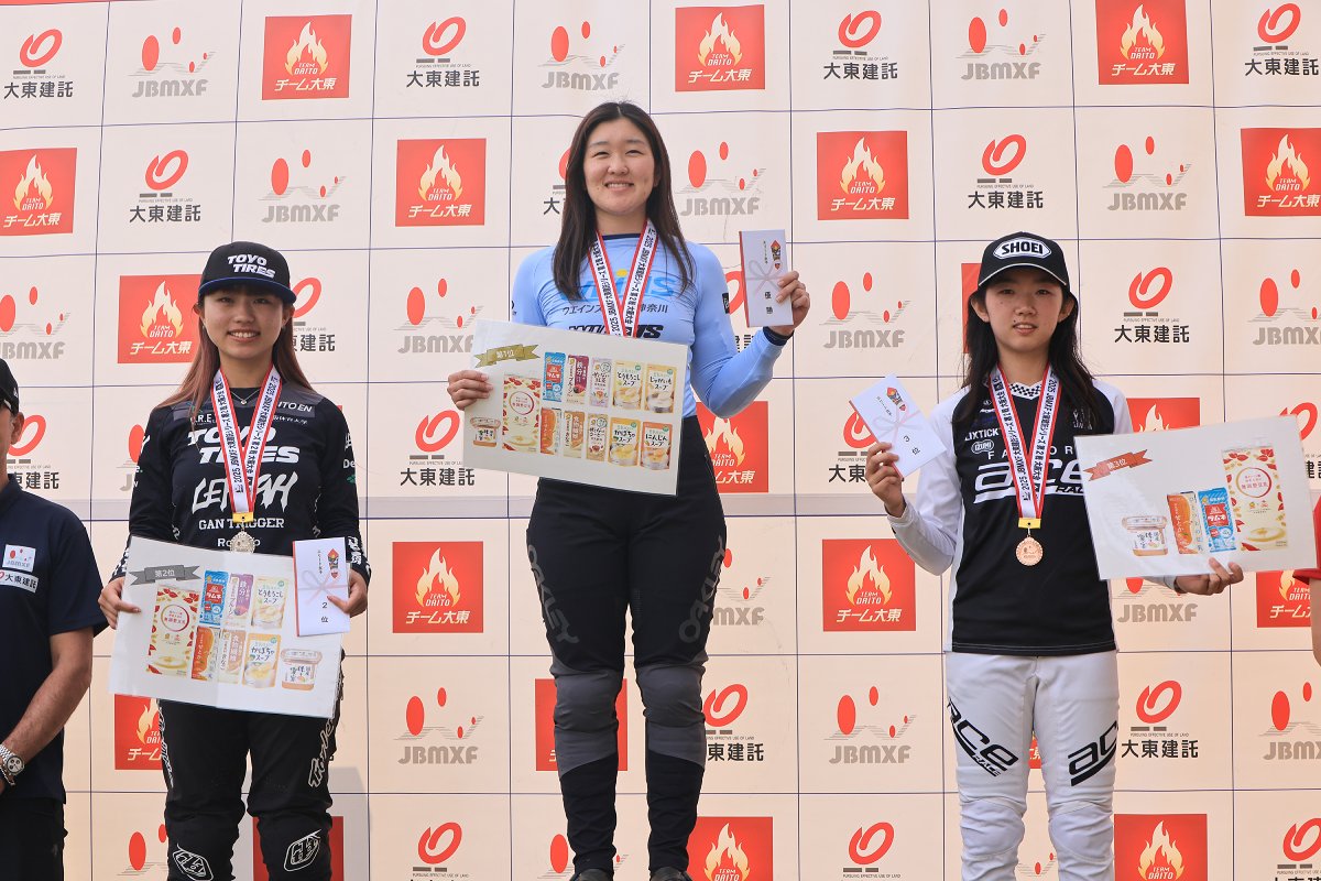 パリ五輪代表の畠山が出場し、注目が集まったチャンピオンシップ女子は、6人のライダーによる3レース合計ポイントで争われた。畠山は持ち前の実力を存分に発揮し、3レースすべてで1位を獲得する圧勝で優勝を決めた。畠山がJBMXFのレースに出場するのは2017年以来、優勝となると実に2016年以来9年ぶりとなる。2位には西村寧々花(大阪体育大学/GAN trigger/関西BMX競技連盟)、3位には野村凪沙(Ace Race Australia Factory Team/関西BMX競技連盟)が入った。