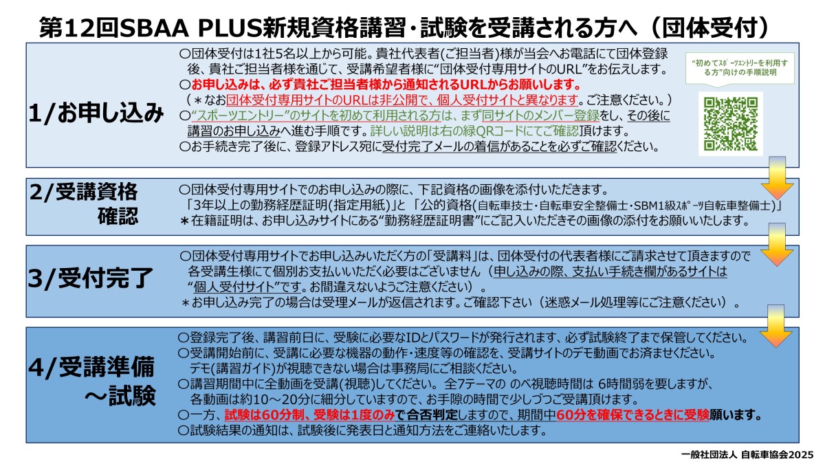 eラーニングで学べる!自転車協会「SBAA PLUS新規資格取得講習会2025(個人&団体)」申込み受付中