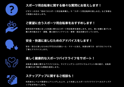 SBAA PLUS認定者とは、スポーツ用自転車の販売に欠かせない確かな経験・高い知識と技量を兼ね備えた、スポーツ用自転車の“トータルアドバイザー”。SBAA PLUS認定者には、当会HPにて認定者在籍店舗情報を掲載するほか、日々進化する技術やソフト情報を学習頂ける機会(ブラッシュアップ講習会等)の場が提供される。