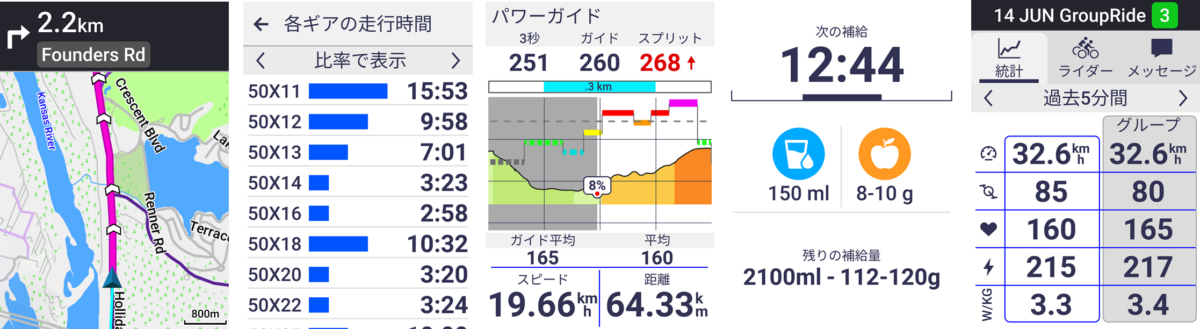ライド後に各ギアの使用時間を確認でき、ギア選択の最適化に役立てられる。