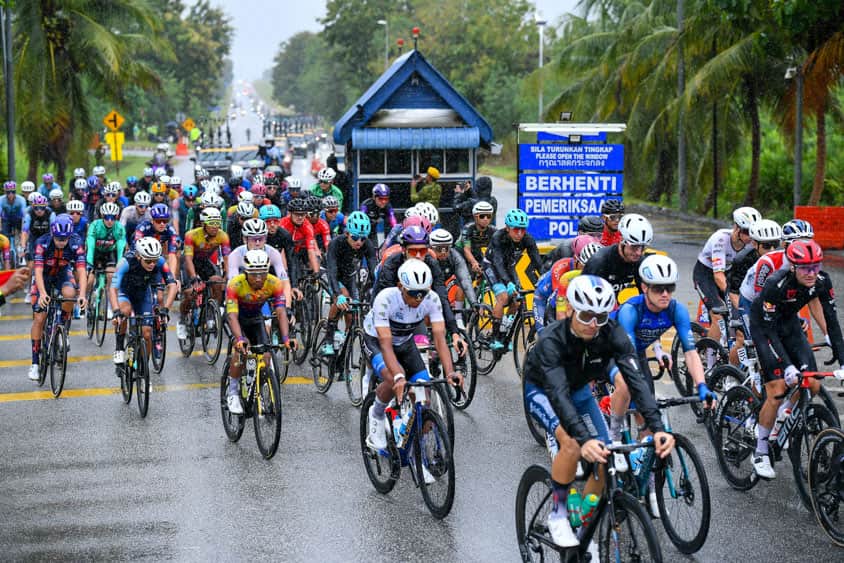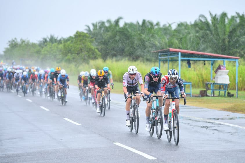 タイ国境の町パダン・ブサールをスタートしたステージは、序盤から激しい雨に見舞われた。濡れた路面と視界の悪さがレースに不確定要素を加える中、集団は落ち着くことなく、スタート直後からアタックが繰り返される非常にアグレッシブな展開となった。