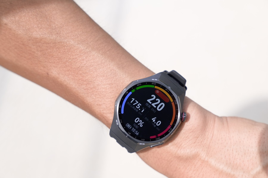 まず、機能レビューの前に、その高級感あるスタイリングの良さに触れないわけにはいかない。高硬度チタン合金ボディやベゼルのエッジの利いたデザインなどのこだわりが詰まる。そして、スポーツウォッチなのにフォーマルシーンでも様になる上質な作りも魅力だ。カジュアルに寄せすぎないクラシカルな時計としての存在感は、最新GTシリーズの特長でもある。その上で、強い日差しの下でも高い視認性を確保。耐久性、防水性に優れ、アウトドアシーンに最適化されている。