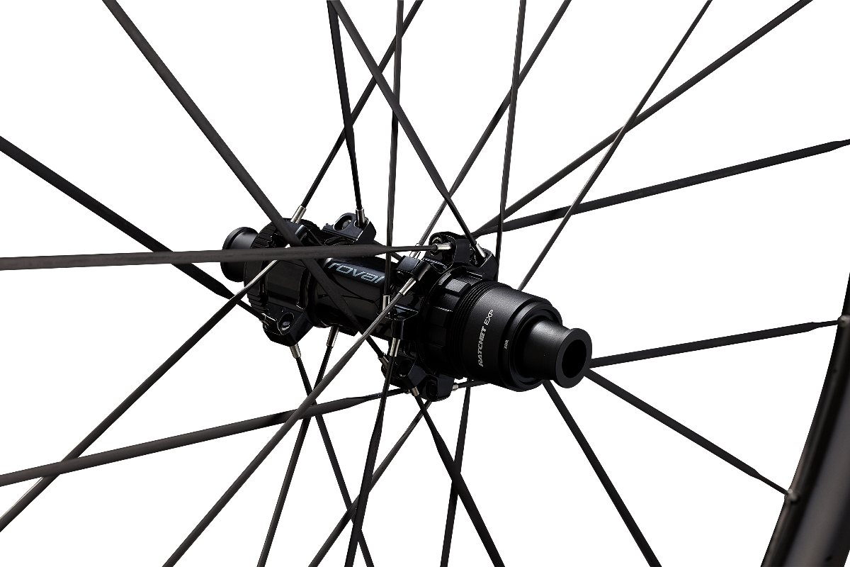 この革新的な軽量化の核心をなすのが、カリフォルニア州バークレーを拠点とする先進複合材料企業ARRIS社と共同開発した「Rovalエアロコンポジットスポーク」だ。カーボン繊維複合素材とチタン製ヘッドで構成されるこの特殊なスポークは、従来の高品質なスチール製スポークと比較して、1本あたり1.9g以上軽く、ホイール全体で103.5gもの重量を削減。特に回転質量の削減に大きく貢献し、爆発的な加速性能を実現する。