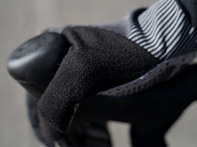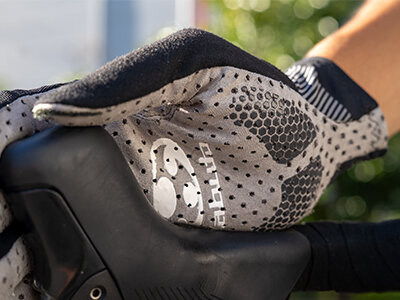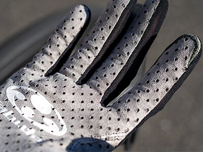 この素材は、繊維表面にある微細な凹凸がハンドルバーとの間に絶大な摩擦力を生み出し、汗や雨などで濡れたウェットコンディションでも、乾いた状態と変わらない驚異的なグリップ力を発揮する。さらに、このナノファイバー生地の上にノンスリップシリコンパッドをプリントすることで、グリップ力を一層高めている。