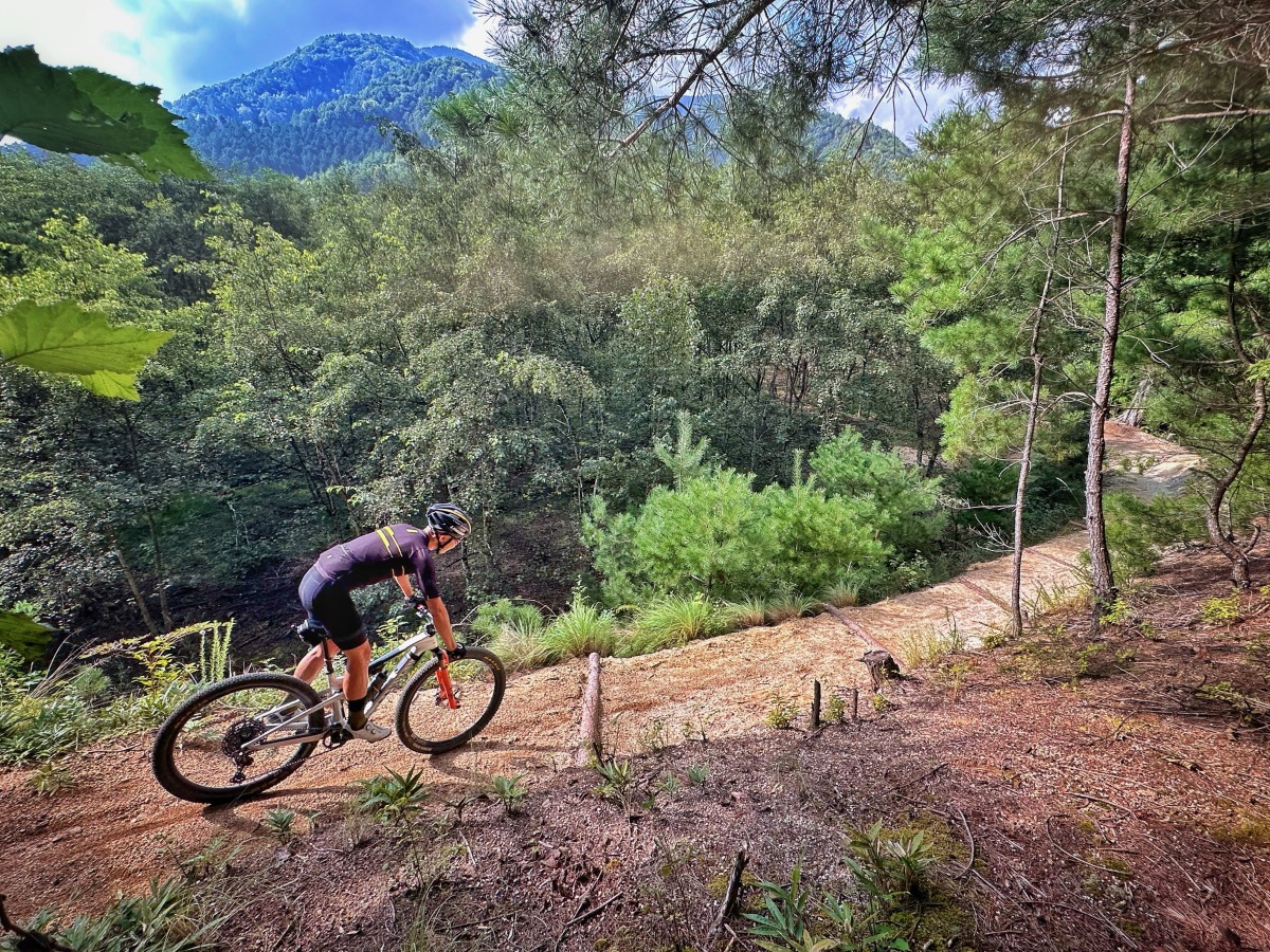 ASSEGAIは現在のMTBタイヤのベンチマークと言われるほど本当にオールラウンドなタイヤで、ひどいウェットコンディションでなければほぼOK。トレッド中央のノブが比較的密で転がりも比較的軽く、サイドのノブが効いてバイクを倒しても安心なので、テクニックにかかわらず扱いやすいです。