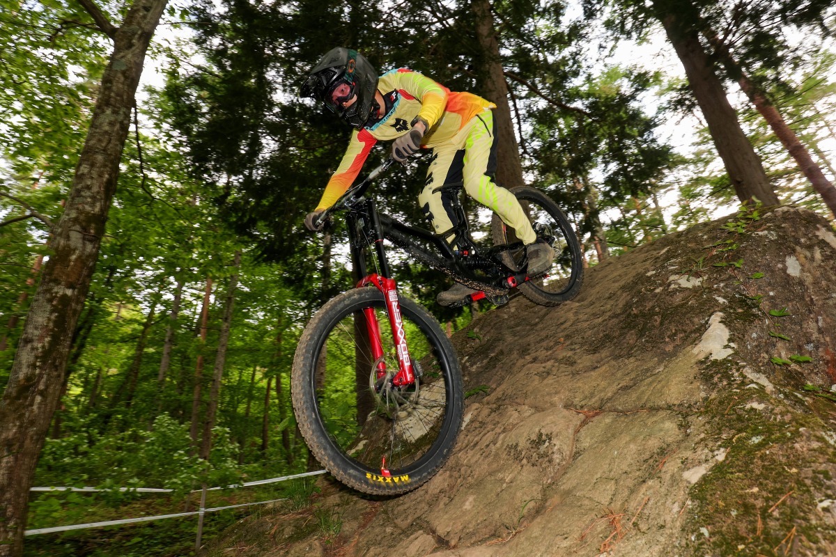 エンデューロは上りコースを自走して計測区間まで行き、3 ~ 4ステージある下り基調の区間のタイムを競う種目です。計測区間のスタート時間はあらかじめ決められているので、そのスタート時間に間に合うように走る必要があり、下り区間だけでなく上りも考えた機材選びが重要になっています。エンデューロの黎明期は軽さに振ったセッティングにすることが多かったのですが、今はタイム計測区間の下りをいかに速く走るかが重要とされています。タイヤ選びはDHに近いですね。