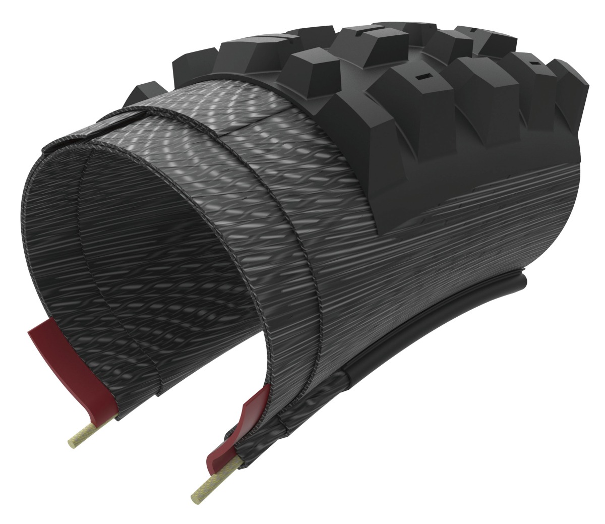 マキシス独自の耐パンクライナーでビードからビードまで覆い、耐パンク性能と引裂強度、耐サイドカット性能の強化、転がり抵抗の減少をもたらすプロテクション。