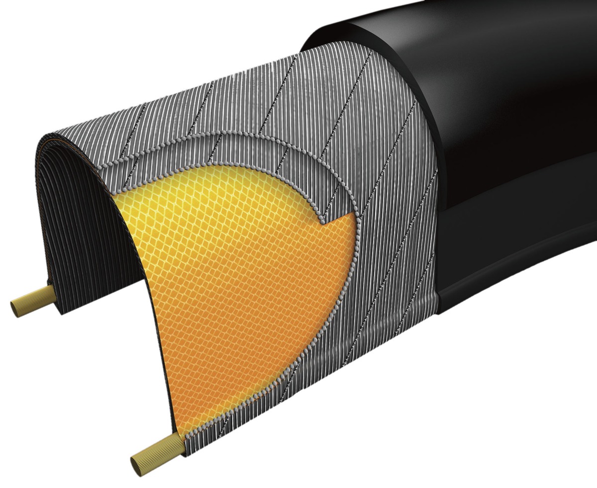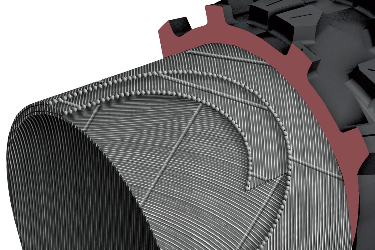 サイドウォールに軽量で柔軟な高密度の繊維を挟み込み、耐サイドカット性能を高めるプロテクション。サイドカットのリスクが高い岩場などで特に有効。