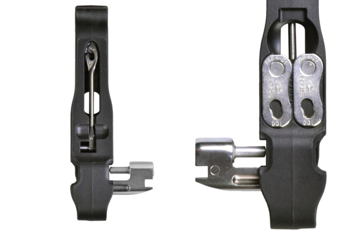 - チェーンカッター / タイヤレバー / スポークレンチ / バルブコアツール / チェーンリンクホルダー / チューブレスプラグツールの6機能