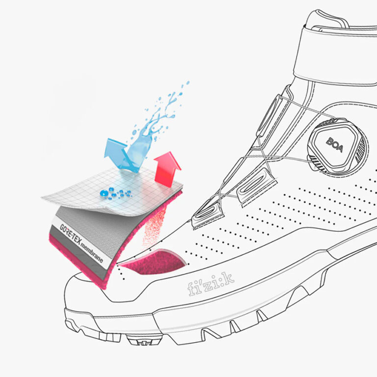 断熱性、防水性、通気性に優れた GORE-TEX の Cirrus XT メンブレンにより、厳しい冬の走行条件でも暖かくドライな状態を保つ。