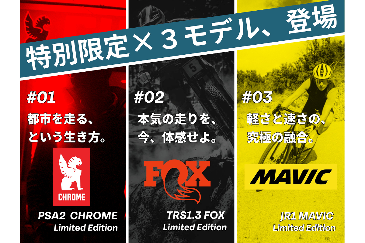 次世代プレミアムe-Bikeブランド「BESV(ベスビー)」は、都市、トレイル、ロードの各分野を象徴する世界的ブランド「CHROME」「FOX」「MAVIC」とそれぞれコラボレーションした、3つの特別限定モデルを発表した。いずれも各ブランドの世界観とBESVの革新的なテクノロジーが融合した、唯一無二の存在感を放つE-Bikeとなっている。