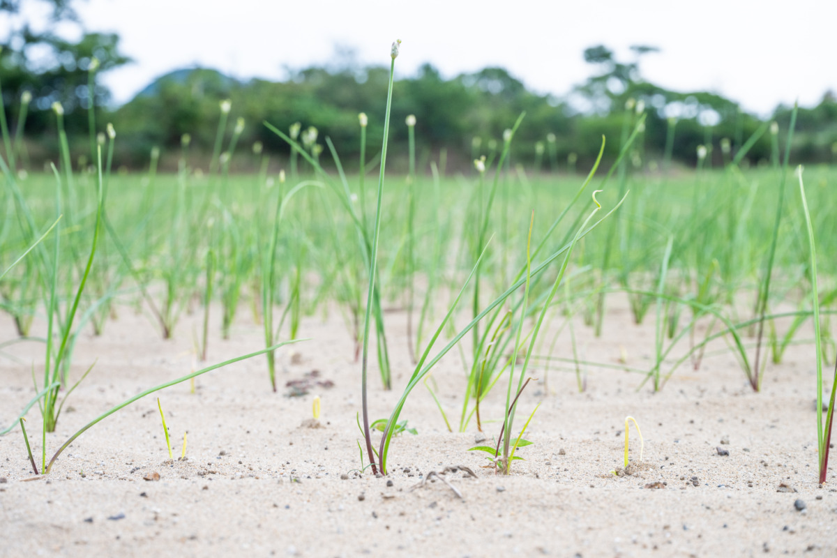 このエリアは砂丘で知られる一方、鳥取市福部町は砂地を活かしたらっきょうの産地としても有名。道路脇にはらっきょう畑が広がる。「IWADO BASE」からはアップダウンのある丘陵地帯を越えていくが、ここでEバイクの快適さを体感することができた。