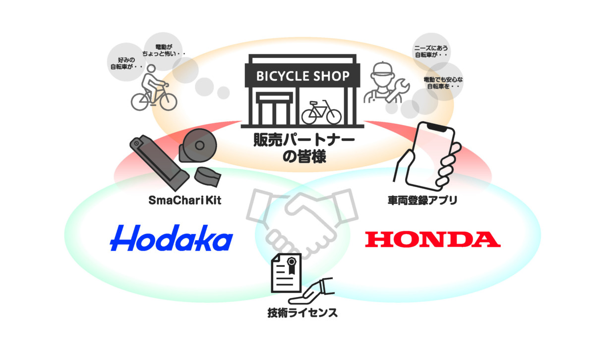この「SmaChari Kit」の販売は、総合自転車メーカーであるホダカがHondaとのライセンス契約に基づき、全国の自転車メーカーや販売店向けに10月15日より受注を開始。SmaChari Kitを搭載した完成車は、2026年1月以降、順次発売される予定だ。