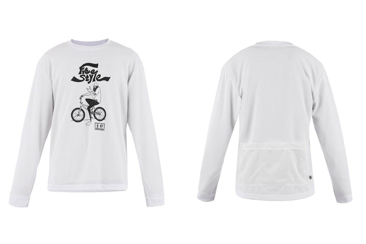 吸汗・速乾性のある素材を使用し、サイクリストに嬉しい3バックポケットを備えた長袖Tシャツ。カジュアルな普段着としても、本格的なサイクリングにも使える汎用性の高い一枚。