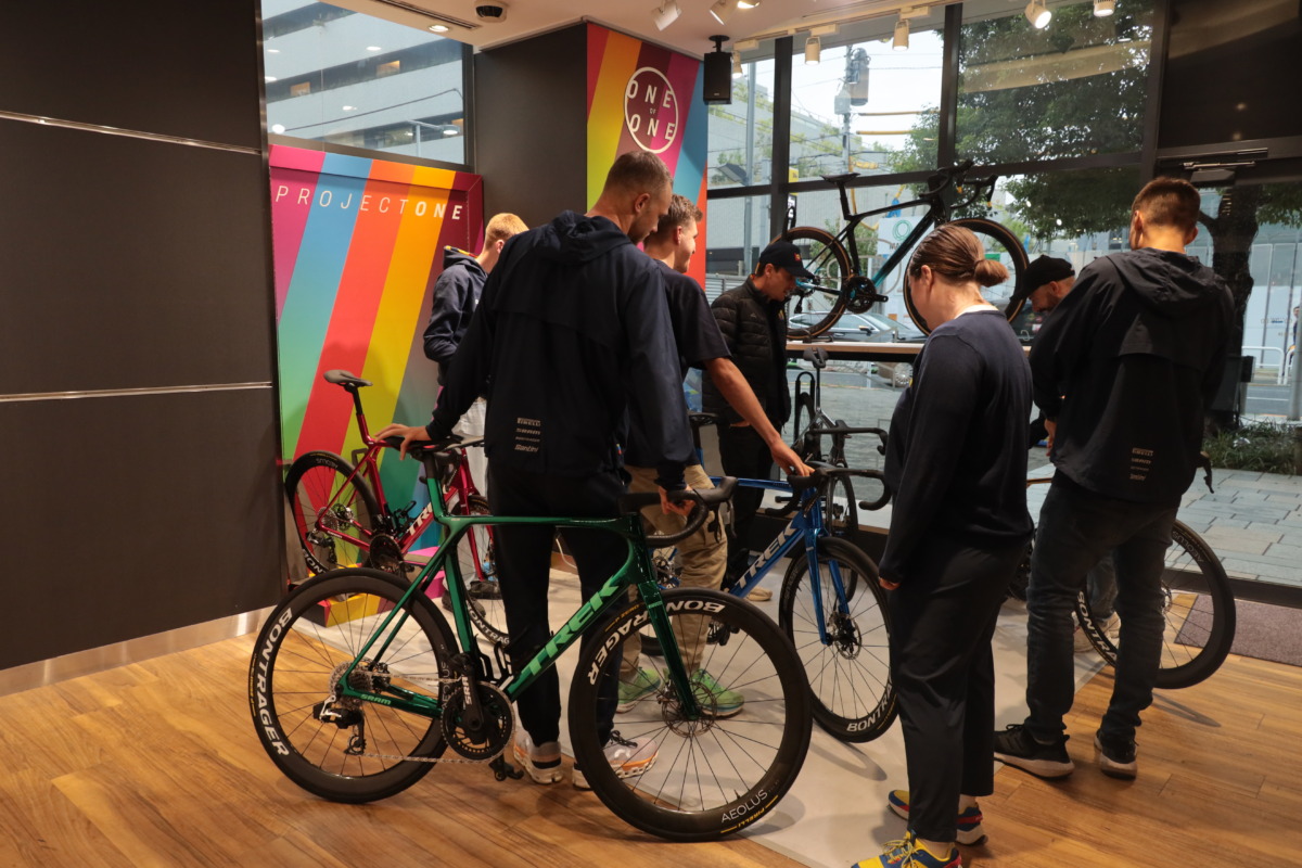 10月16日(木)には、ジャパンカップ2025のために来日したリドル・トレックチームの選手たちが、東京・港区のTREK Bicycle 六本木ヒルズを訪れた。彼らが実際にレースで使用する「Chroma」カラーに塗装されたバイクを見るのはここが初めてであり、それぞれのバイクカラーを目にして喜びの表情を見せた。さらに場所をレセプション会場に移し、関係者向けのウェルカムパーティーが開催された。監督および選手たちからの自己紹介も行われ、会場は温かい雰囲気に包まれた。