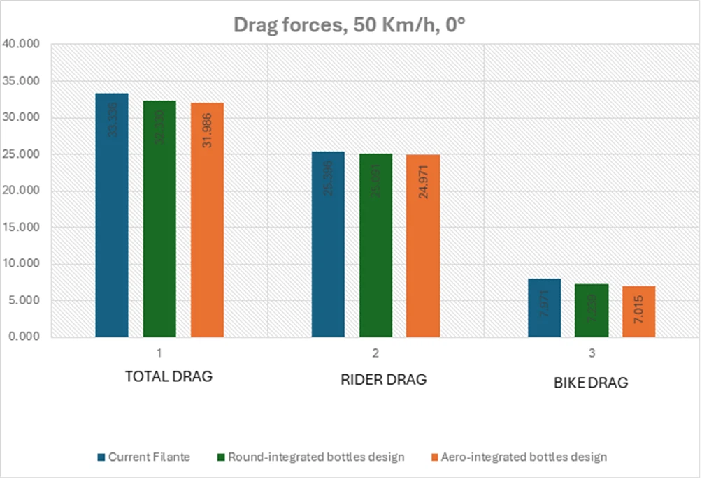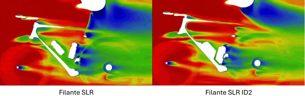 この圧倒的なエアロ性能向上の核心をなすのが、フレームと一体化した専用のエアロボトル&ケージ「Aerokit」だ。ウィリエールと、ハイドレーションシステムの世界的リーダーであるElite社が共同開発したこのシステムは、ダウンチューブとシートチューブに装着され、フレームの一部として機能。ボトル周辺の気流を整える“アレッタ(フィン)”のような役割を果たし、乱気流の発生を劇的に抑制する。CFD解析では、従来の丸ボトルと比較して、空気抵抗を実に3分の2以上も削減するという結果が出ている。