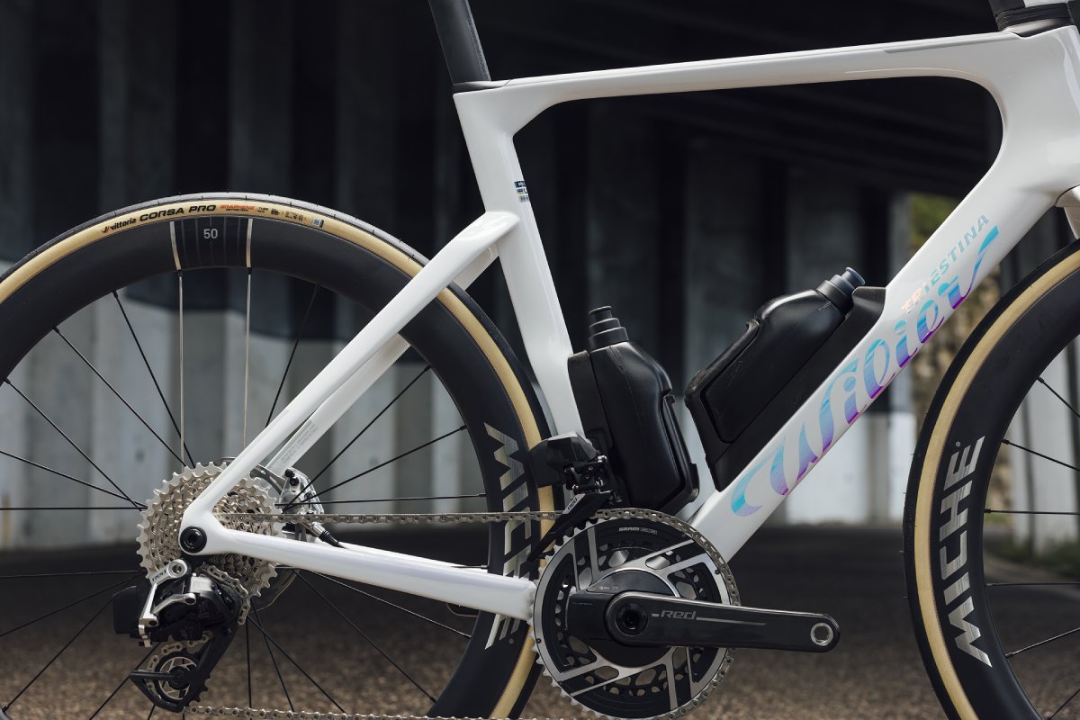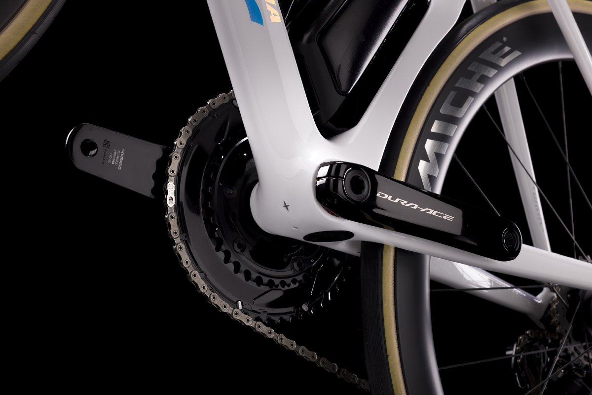さらに、シマノDi2バッテリーの搭載位置を、従来のシートポスト内部からBB後部へと移設。これは、より薄くエアロになったシートポストの形状によるものだが、結果として低重心化によるハンドリングの安定性向上と、飛行機輪行やトラブル時のメンテナンス性向上という、副次的なメリットももたらした。