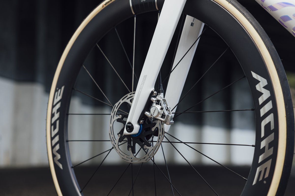 また、現代のレースシーンへの最適化も徹底されている。リアディレイラーハンガーは、整備性と将来性を見据えUDH規格に対応。タイヤクリアランスは、近年のトレンドであるワイド化に対応し、最大34mmまで拡大された。これにより、荒れた路面への対応力と快適性が向上し、リアのホイールベースがわずかに延長されたことで、直進安定性も高まっている。