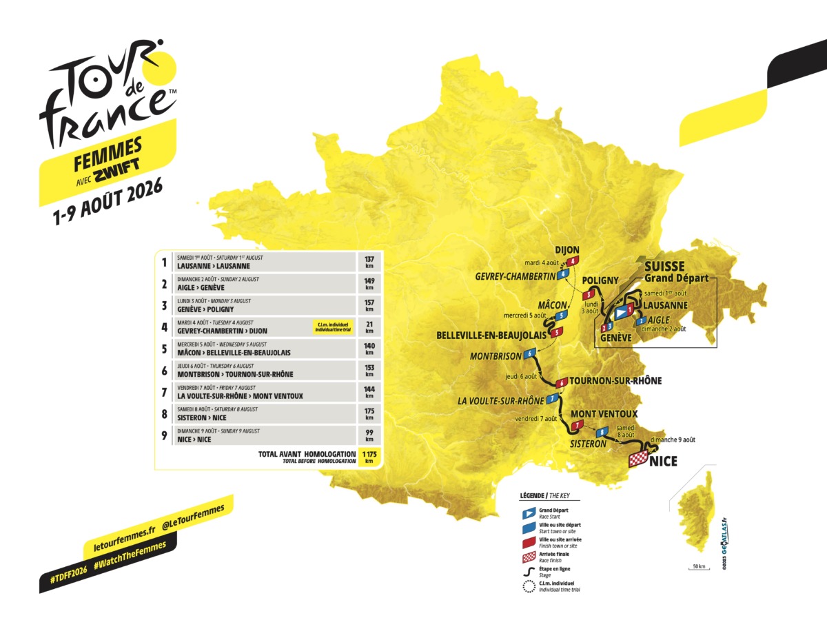プレゼンテーションでは、ツール・ド・フランス・ファムのコースも発表され、スイス・ローザンヌからニースまでのルートが設定されることに。