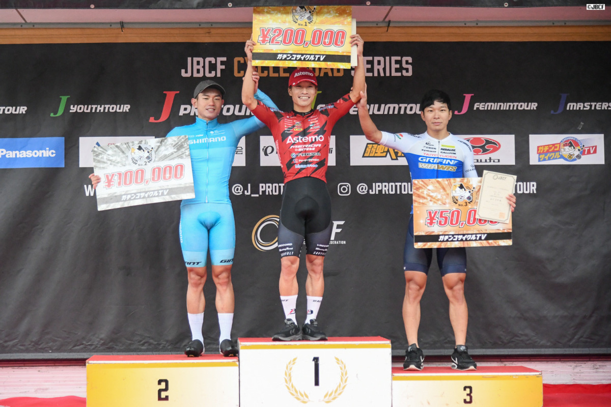 最後は3名によるゴールスプリント勝負となり、僅差で岡が先着。シーズン最終戦を見事な勝利で締めくくった。2位には山田、そして3位に入った金子は、この結果をもって年間個人ランキング首位の座を確定させ、2年連続のJプロツアー年間総合チャンピオンに輝いた。