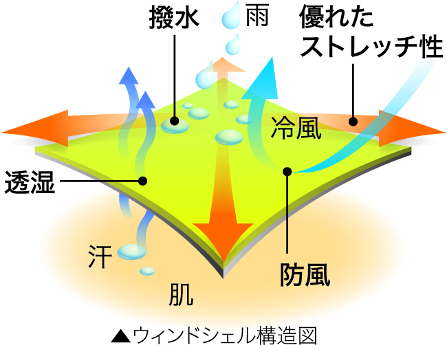 パールイズミの「ストレッチ ウィンドシェル」シリーズは、薄手で軽量ながら優れた防風・透湿性を誇る「ウィンドシェル®」素材を採用した、サイクリストのマストアイテム。身体にフィットするスリムなシルエットで、高速走行時でも生地のバタつきが少ないのが大きな特徴だ。また、素材が持つ優れたストレッチ性により、タイトなフィット感でありながら動きを妨げることなく、快適なペダリングをサポートする。