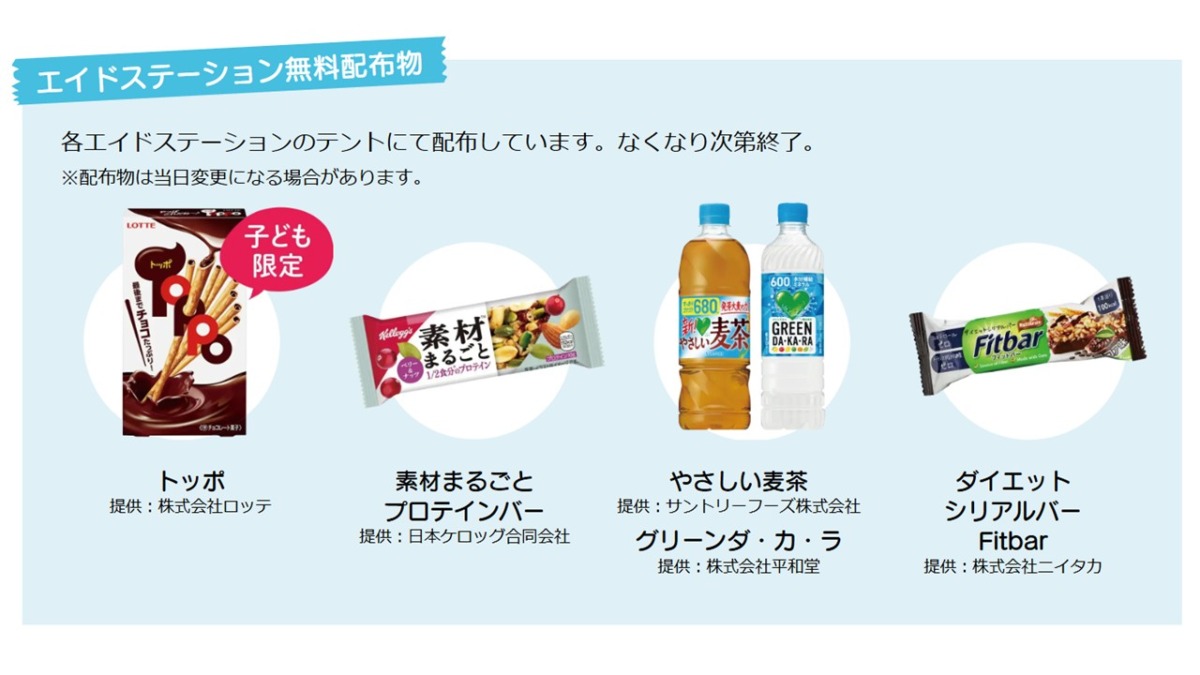 11月8日(土)、9日(日)の2日間、滋賀県では琵琶湖の以下の 4 か所にてエイドステーションを開設。各 エイド ステーションでは、ビワイチようかんをはじめとしたビワイチ商品の販売のほか、キッチンカーや無料のアロマコンディショニング マッサージブース など、この期間限定の特別な サービス を用意する。また、飲料やプロテインバーの無料配布も行う 。