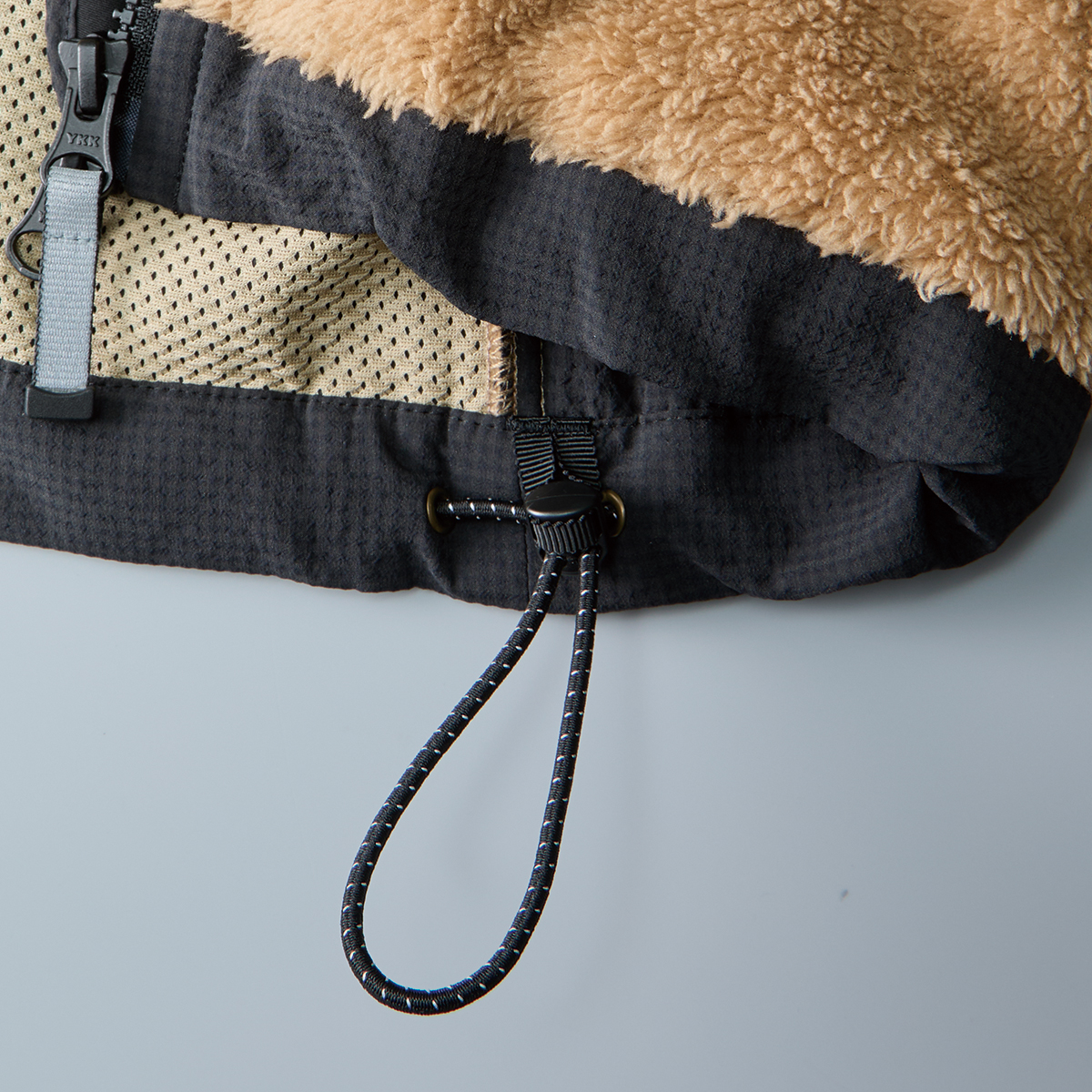 裾とフードには、フィット感を調整し、冷たい風の侵入を防ぐドローコードを装備。