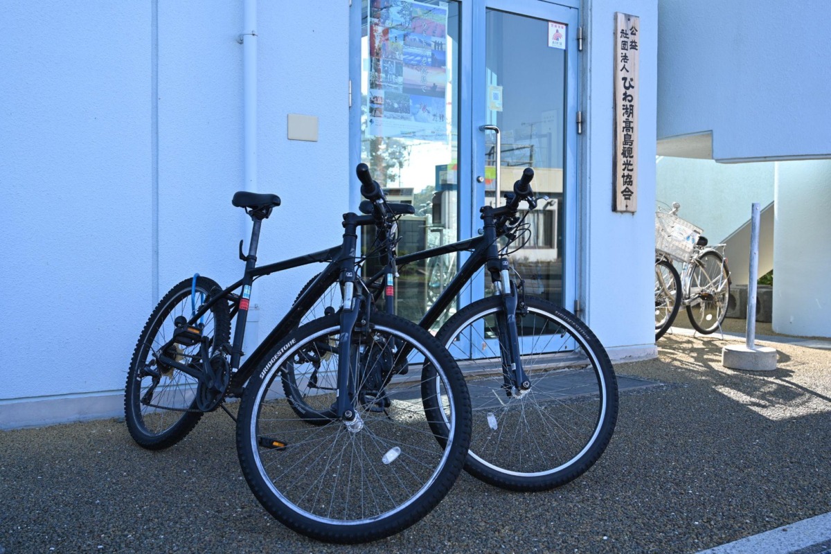 JR新旭駅前のびわ湖高島観光協会は、びわ湖高島レンタサイクルの窓口のひとつになっています。