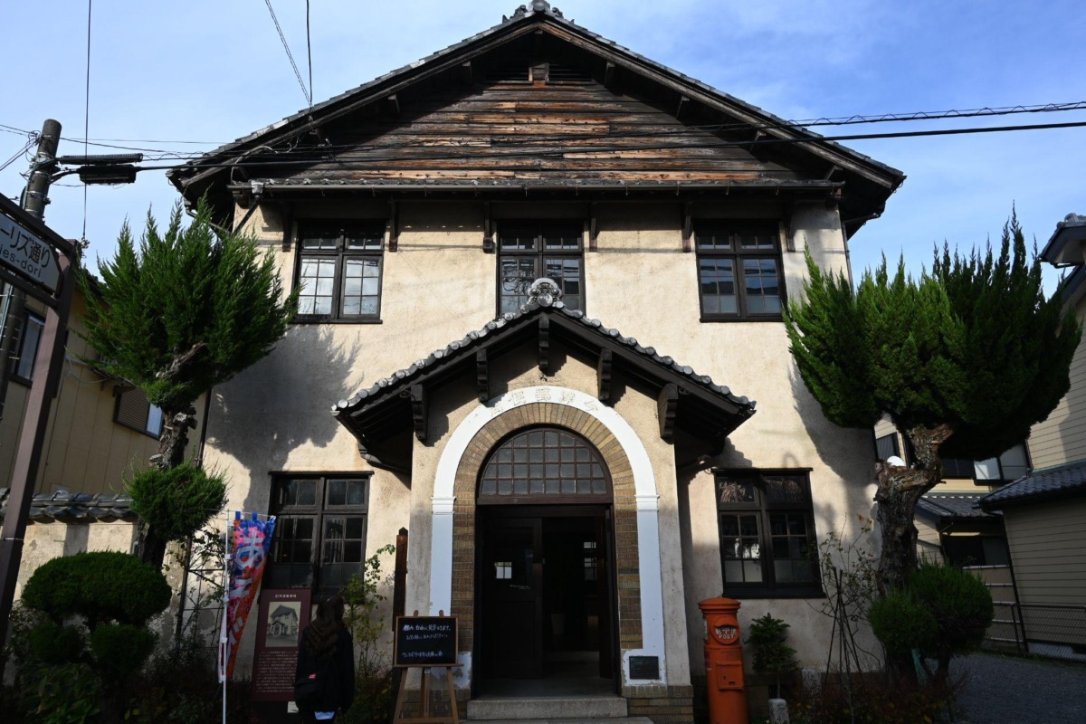 ヴォーリズ通りには、同じくヴォーリズ設計の「今津教会会堂」や「旧今津郵便局」も点在。資料館は“箱っぽい”落ち着いた雰囲気、旧今津郵便局は切妻屋根がキリッと印象的…と、それぞれの個性がちゃんとあって見比べるのが楽しいです。