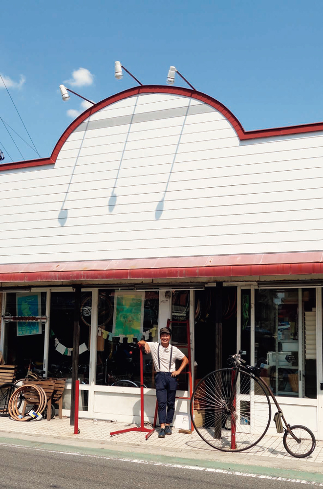 ヴィンテージ自転車を扱う葉山自転車市場を営んでいる門脇大作さん。この人も、古いもの好きの琴線に触れる三崎が好きでこの物件に一目惚れしてしまったらしい。元は和食屋の店舗で、建築関連の腕もたしかなスタッフや建築系常連さんが半分くらい自力で改修を施したとか。