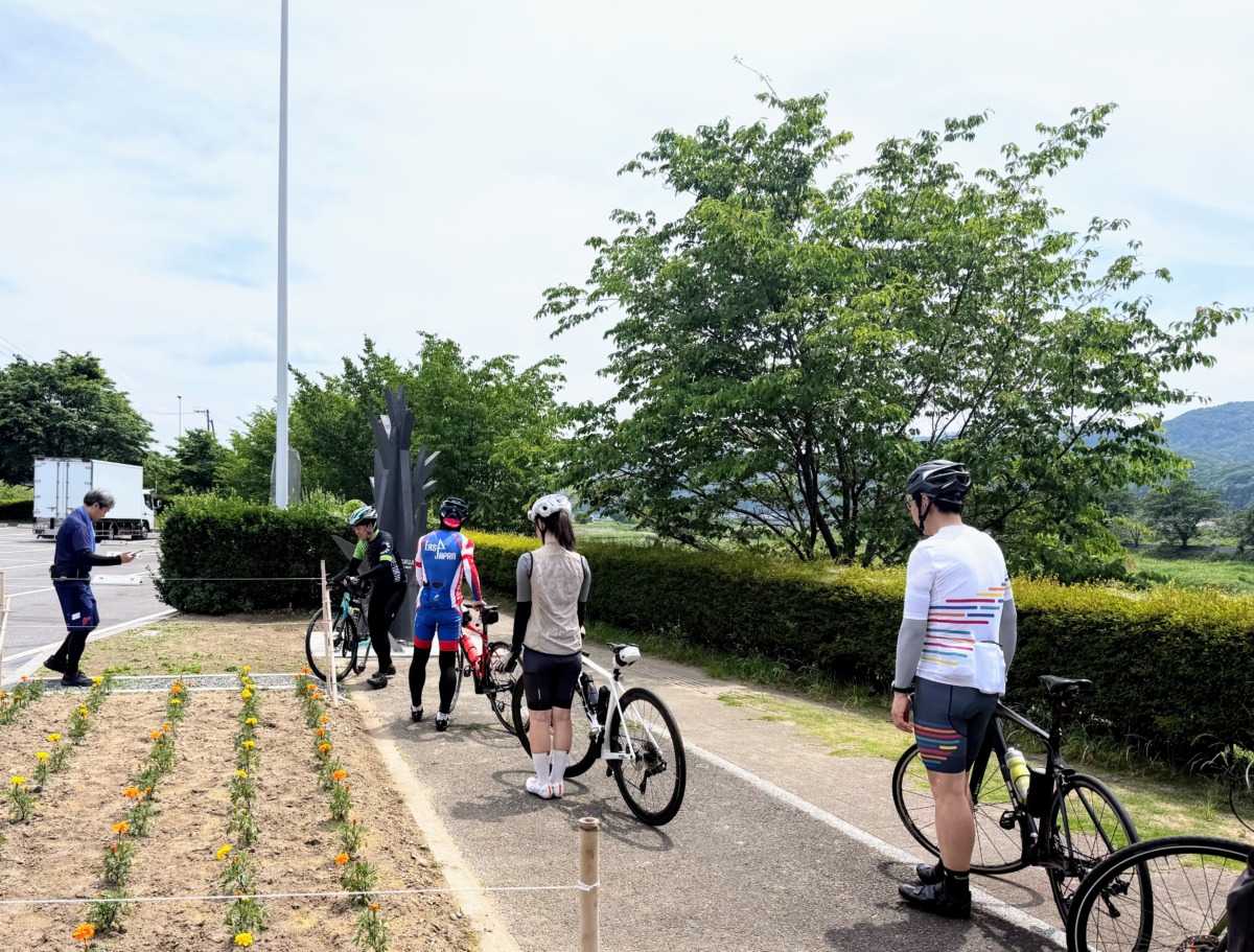 モニュメントが設置されているのは、サイクリストの休憩拠点として人気の高い「道の駅はなわ天領の郷」の敷地内。ここは「奥久慈街道サイクリングルート」にもほど近く、補給や休憩で立ち寄るライダーも多い場所だ。