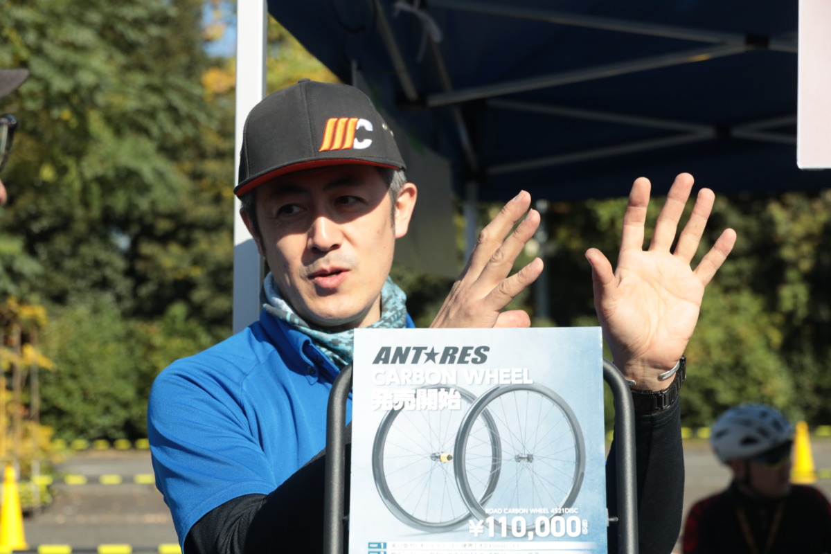 今回ワイズロードから登場したばかりの「ANTARES(アンタレス)」新開発のカーボンホイール「4521 DISC TLR」をはじめ、今後ワイズロードで展開を予定しているパーツやフレームのプロとライプも展示されている。「発売は計画していますが、あくまでもプロトタイプです。もしかしたら変わるかもしれません」という奥平総帆新橋店店長の話だが、製品の裏側についてもお話を聞けてしまうのが「スポーツバイクデモ2025 in 東京」だ。