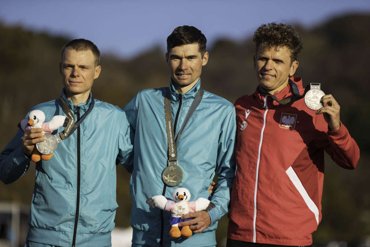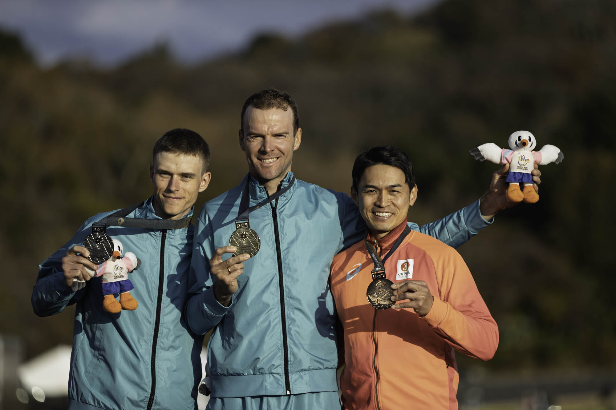 大会4日目の11月22日に行われた男子ロードレース(100km)。この過酷なレースで表彰台の一角を掴み取ったのは、日本の藤本六三志だった。