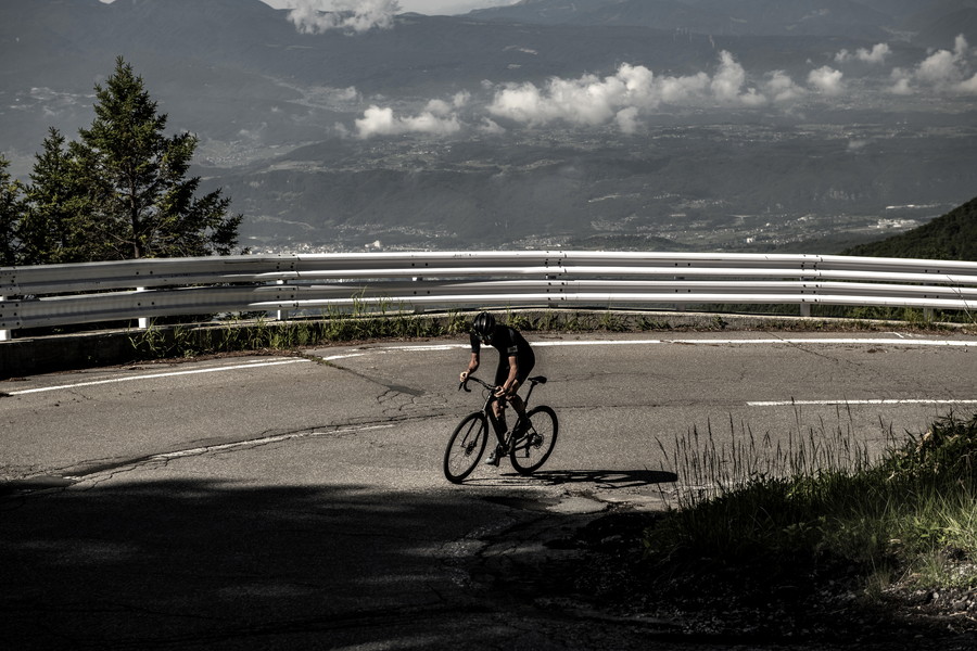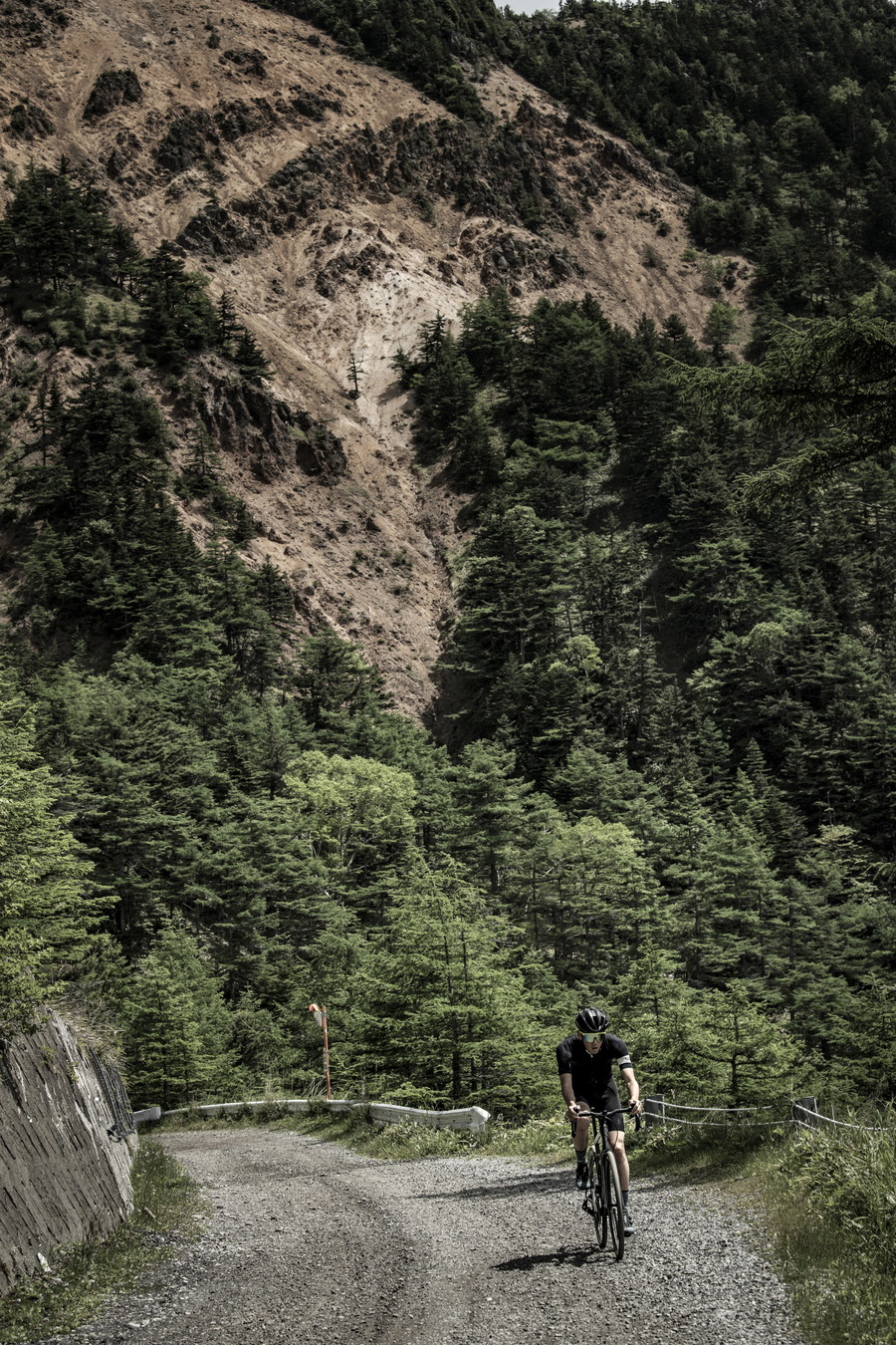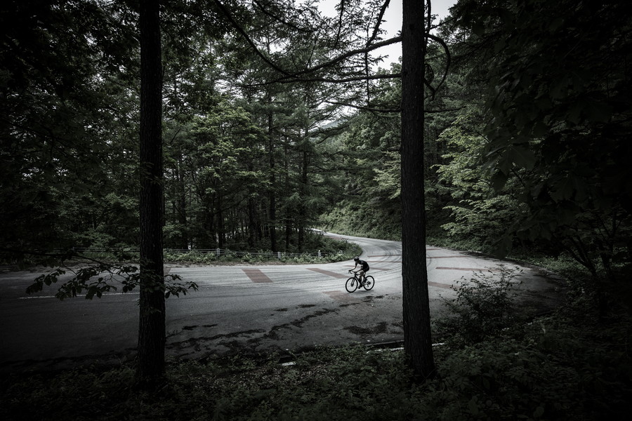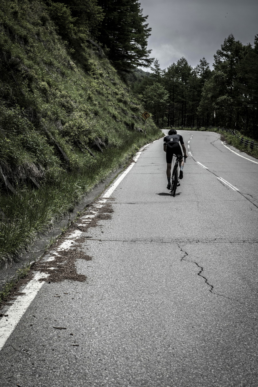 この登坂は、誰が呼んだか「日本のラルプデュエズ」として知られている。あろうことか、世界最大のレースの、最も象徴的な登坂の名前を冠しているのだから、それ相応の格が求められるというものだ。だが、山頂までたどり着いてみると、あの華やかなスキーリゾートタウンが広がるアルプスの登坂に比べ、ここは静まり返っている。冷涼で乾いた空気が標高2000m地点であることを物語るほかに、この峠の特質を伝えるものは何もないようにすら思える。……いや、ひとつだけある。ここまで酷使され、切れたように痛む脚はこの峠が容易いものではないことを証している。小諸の市街地からは20km近い登坂だった。