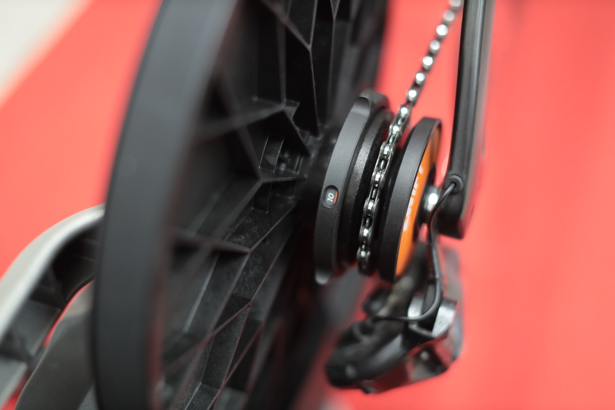 プリインストールされたシングルギア「Zwift Cog」と、無線コントローラー「Zwift Click」により、面倒なカセットスプロケットの取り付けや変速調整は一切不要。8〜13速のあらゆるバイクに対応し、驚くほど静かな「バーチャルシフト」でのライドが可能だ。この点において、価格の高い上位モデルとの差は存在しない。