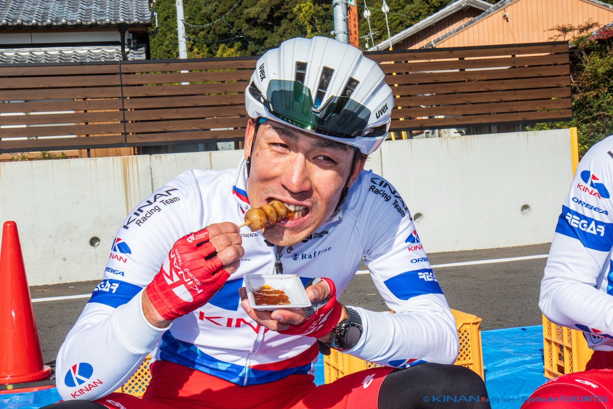 また、本イベントは今季限りでチームを退団する柚木伸元と宮崎泰史の「送別会」としての側面も持っていた。スタート前に行われたセレモニーでは、両選手が大勢の参加者・ファンの前で挨拶。キナンジャージを着用しての最後のチーム活動として、リラックスした表情でファンとの別れを惜しみつつ、最後のライドを噛み締めていた。