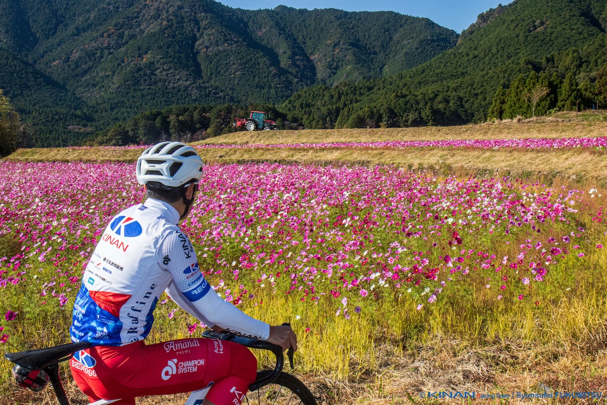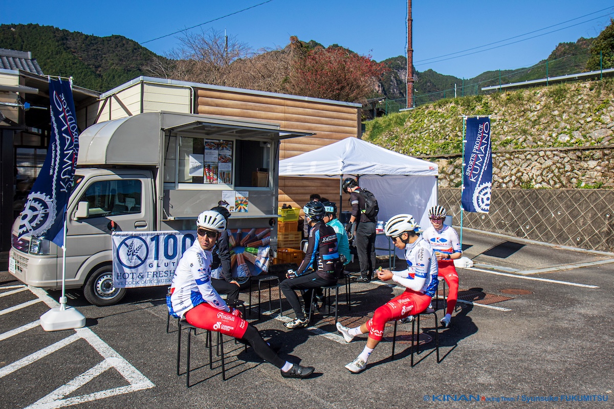 その名の通り、地元を拠点に世界で戦う「KINAN Racing Team(キナンレーシングチーム)」が全面協力しており、今回は7名の選手(山本元喜、宇賀隆貴、柚木伸元、新宮颯太、宮崎泰史、トマ・ルバ、新城雄大)がゲスト参加。約150名の一般参加者とともに、地域の魅力と味覚を再発見するべくペダルを回した。地域の良さを発信する機会として、またサイクリスト同士の交流や健全な地域社会づくりへの寄与を目指し、チームと地域が一体となって作り上げているのが特徴だ。
