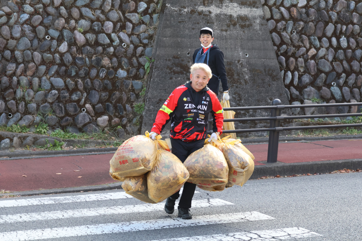10周年の今年も片山右京さんが清掃に参加した。実業団チームTeam FORCEのメンバーを中心に、グッチャリのメンバーも加わり、坂の上から下まで声を掛け合いながら作業が進んだ。