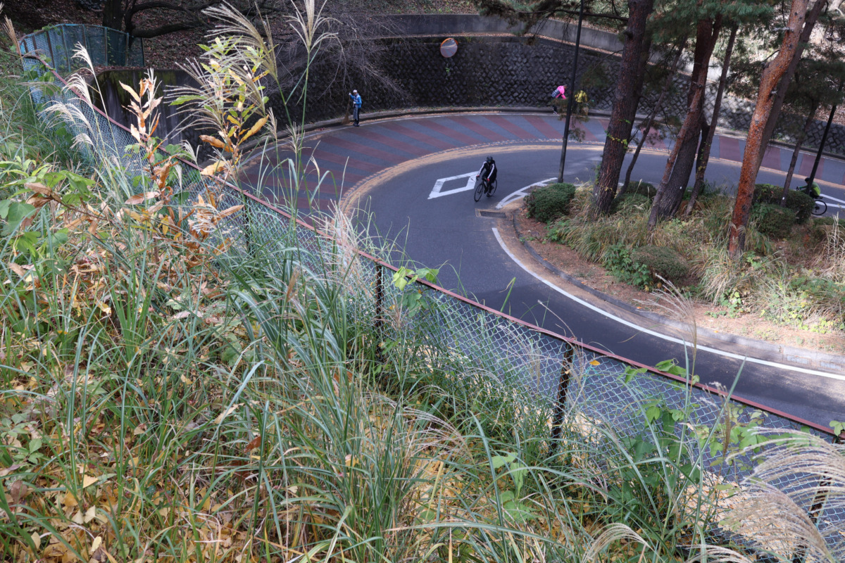 このいろは坂は多摩市の聖蹟桜ヶ丘駅近くにあり、多摩丘陵の入り口に位置するつづら折りの坂である。クルマやバスが通る生活道路でありながら、その雰囲気のよさから自転車乗りも多く走りに来る名所として親しまれている。ジブリのアニメ『耳をすませば』のロケ地として登場したことでも知られ、サイクリストだけでなく地域の人にとっても特別な場所である。
