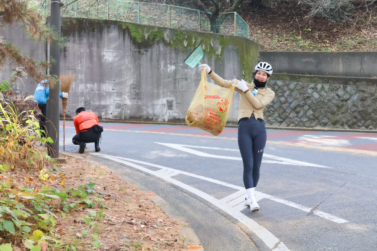 「途中、坂を登るサイクリストにもお声掛けして仲間に加わってもらうなど、自転車を通じた輪が広がって嬉しい限りです」と藤條たかゆき市議もSNSでコメントした。この日は、坂を登ってくる通りがかりのサイクリストにも清掃活動に加わってもらう場面があり、3人の仲間が増えた。自転車を通じて輪が広がっていく光景は、この清掃の象徴的なシーンでもある。