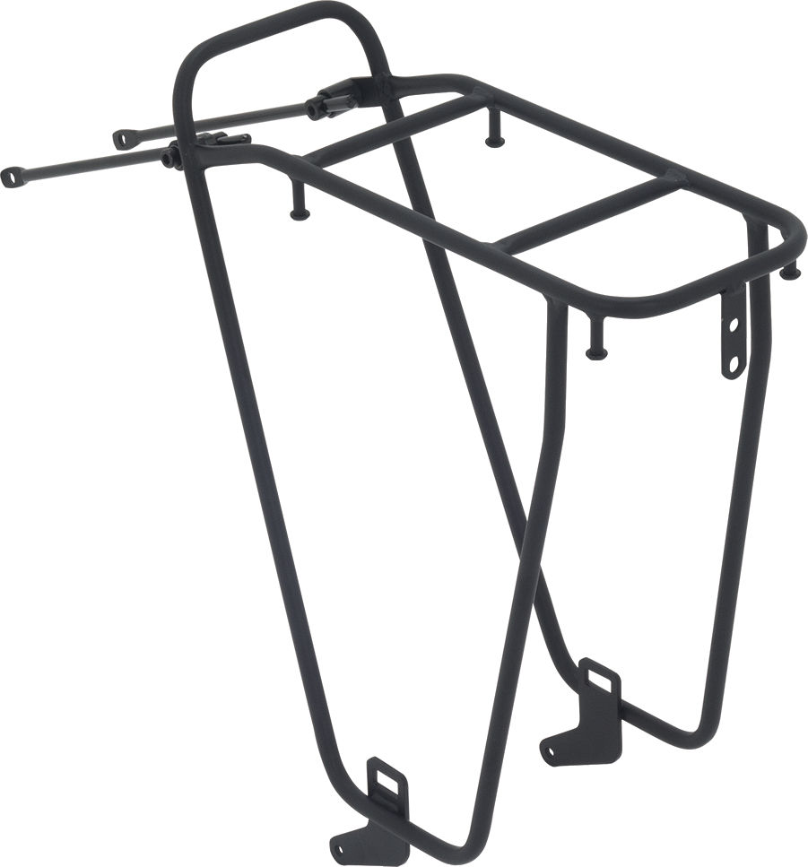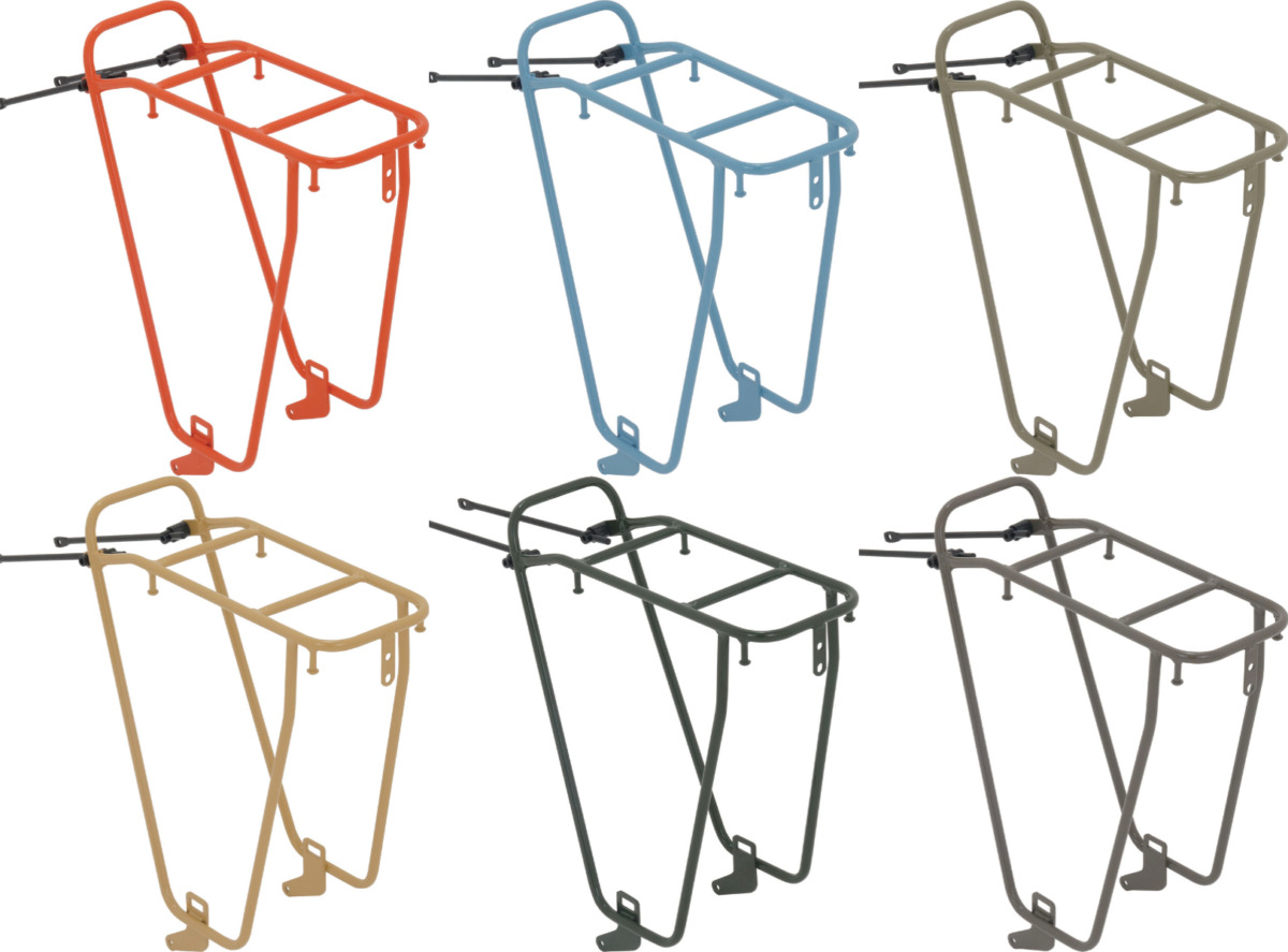 幅広い自転車に装着可能な中空スチール製リアキャリアー「GV-R700」。キャリアーレッグを後部にオフセットし、サドルやシューズとの干渉を軽減している。重量約910gと軽量ながら、耐荷重は18kgと実用的で、泥除けやパニアバッグの装着にも対応。全7色のカラー展開で、自転車のカラーやスタイルに合わせて選択可能。