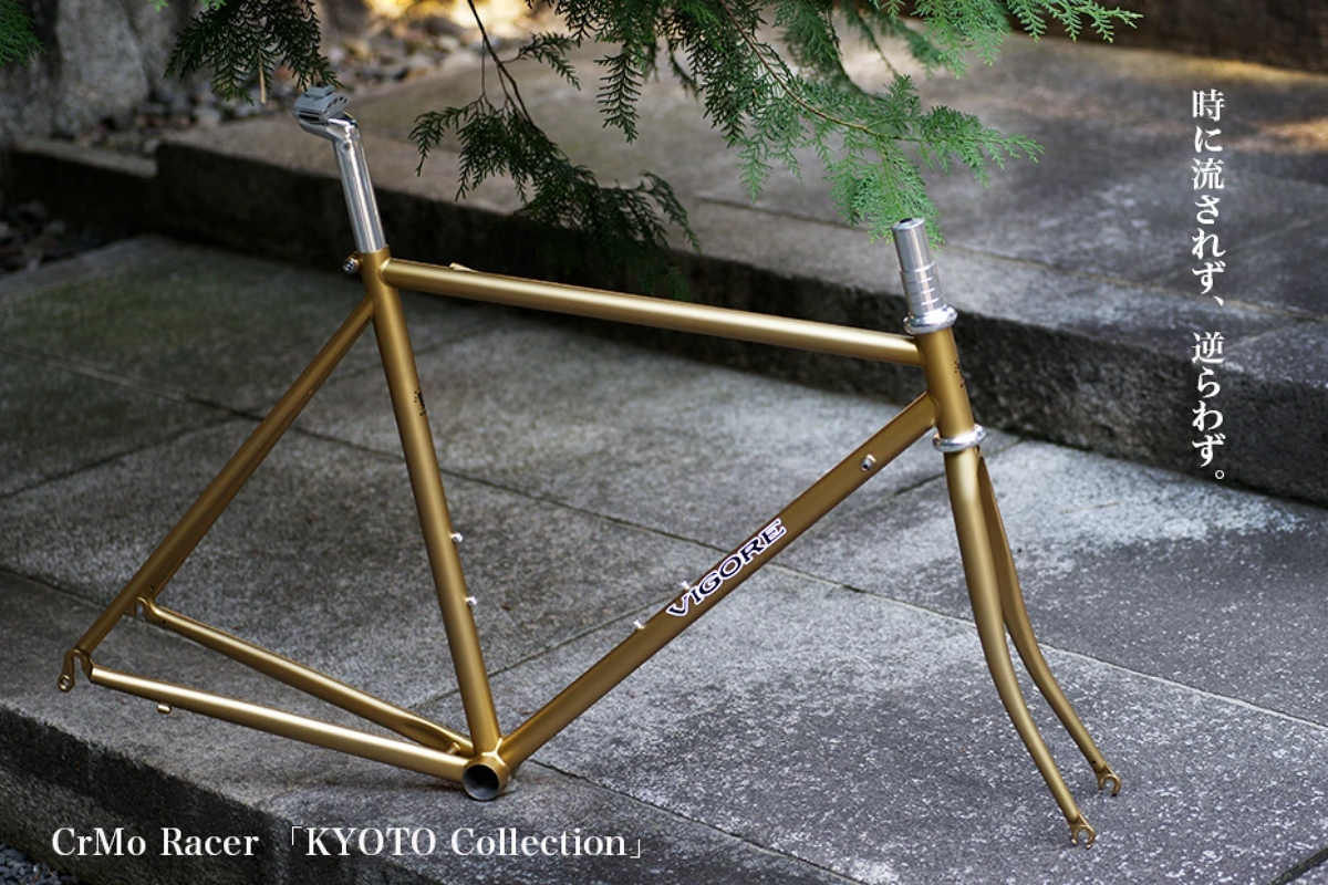 ラインナップの中核を担うのは、30年以上の熟成を重ねたクロモリロード「CrMo Racer」をベースにした「KYOTO Collection」だ。「黒金」「しるし」「照応」など、京都の景観や空気感をテーマにした全5色のオリジナルカラーを展開。