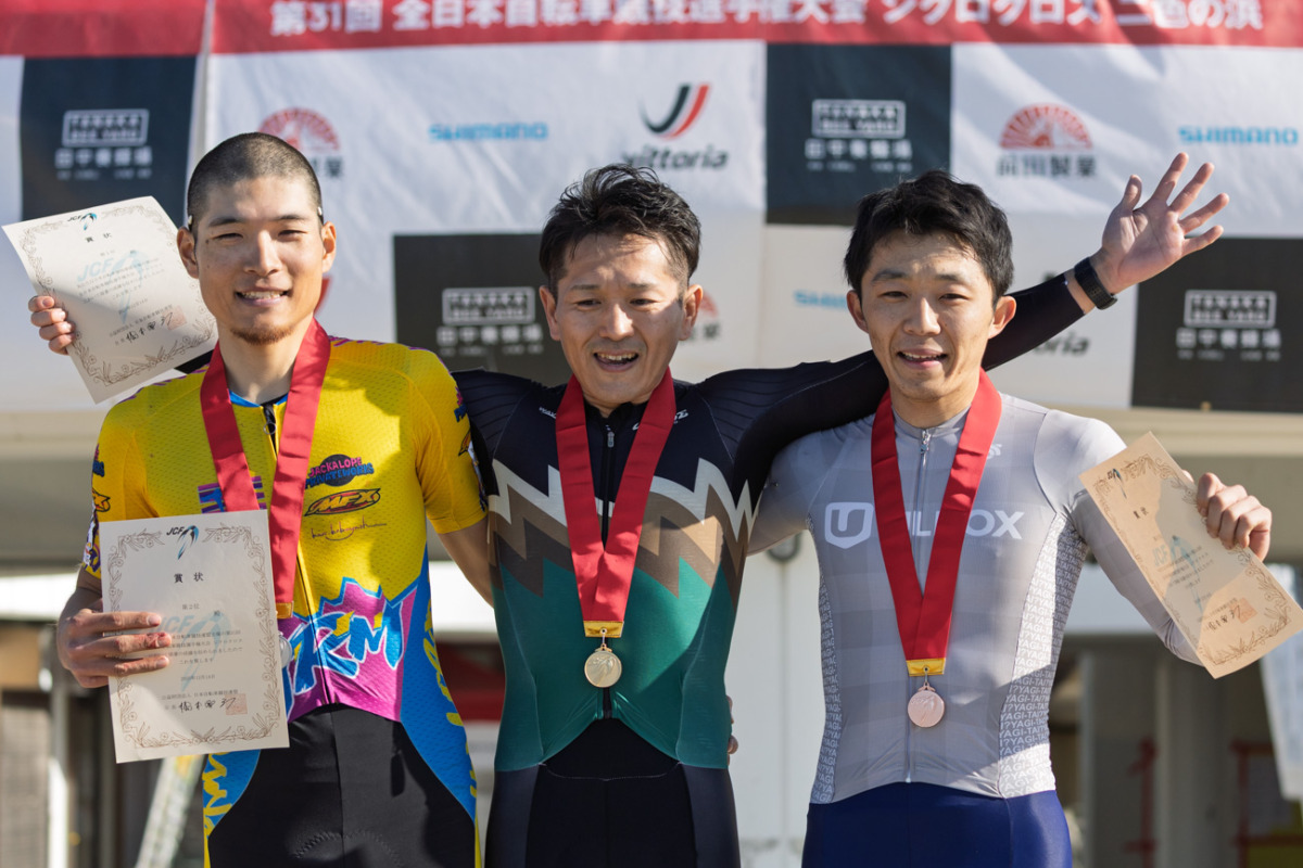 幅広い年齢層が競い合う男子マスターズ。最も若いMM35-39カテゴリーでは、関東から参戦した和田拓海が優勝。「二色浜は初めて。普段通りのトレーニングで自然体で臨んだ」という和田が、元Jプロツアーレーサーの海藤稜馬(Panasonic Racing)との接戦を19秒差で制した。和田は今後、グラベル競技やシクロクロスのマスターズ世界選手権も見据えているという。