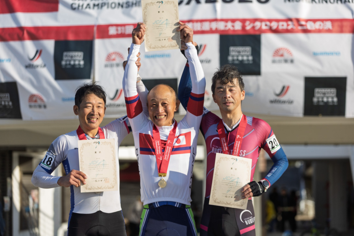 MM50-54では生田目修(イナーメ信濃山形&大幸ハーネス)がランニングを活かした走りで砂区間を攻略し優勝。MM55-59では「地元のチームだと思っている」と語る倉橋孝太郎(ベッキーシクロクロクロス)が、残り1周からの全開走行で接戦をモノにした。