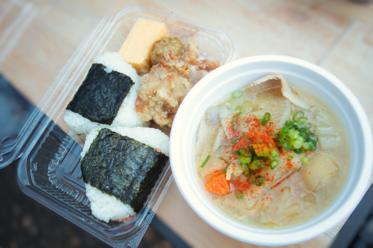 須津エイドではお弁当に加え、暖かい豚汁が待っていた。各グループに分かれてそれぞれキャンプ場で昼食を楽しみながら、打ち解けた仲間と談笑を楽しんだ。こうしたひとときに新しい仲間ができるのが、グループライドのいいところだ。