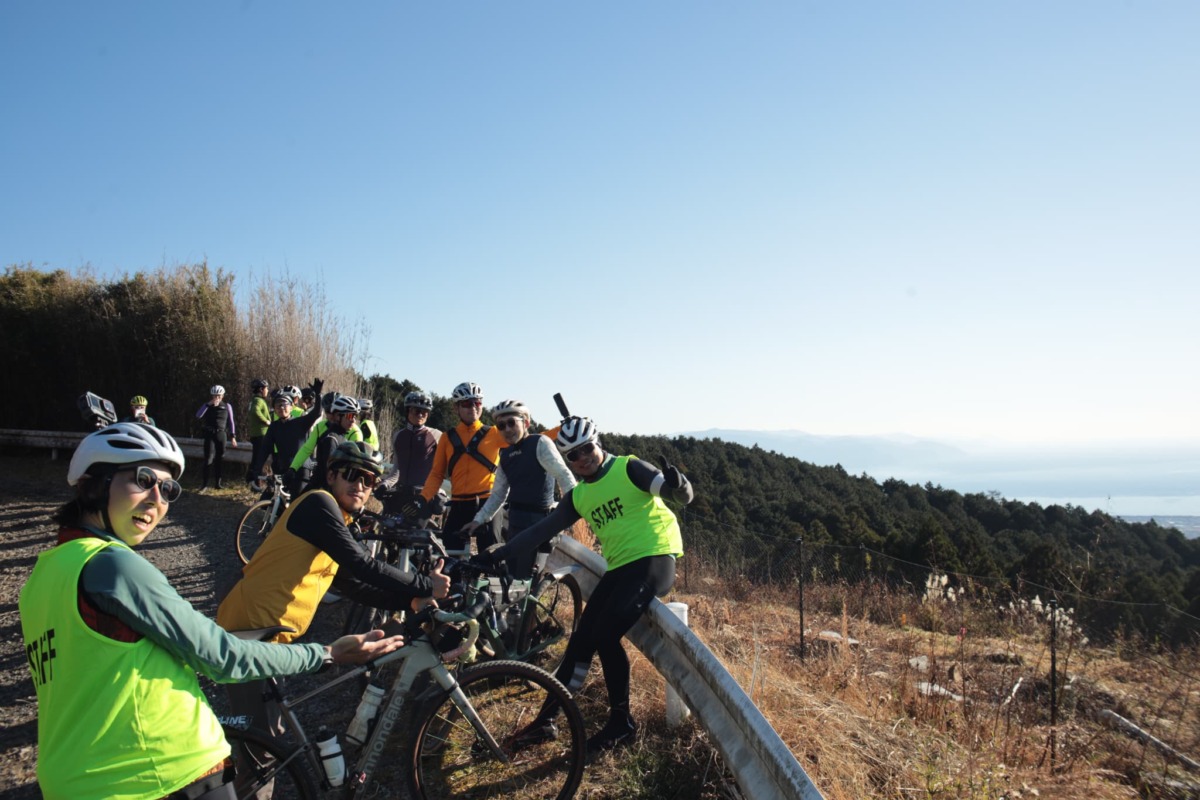 登りで苦しくなる場面でも、同じペースの誰かが横で踏んでいるだけで気持ちが前に出る。荒れた路面でラインを探すときも、ガイドの一声で不安がほどける。挑戦を孤独にしない仕組みが、このイベントの魅力として強く残った。かく言う私も後半へばりかけていると、先を行くメンバーが温かい言葉をかけてくれた。ほんとうにありがたい。